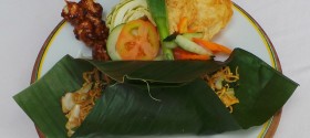 Bakmi goreng dengan bakso, udang, telur dan sate favourit PB XI Seperti bakmi yang panjang kita punya kesabaran yang panjang dan tak goyah dengan pendirian dalam keyakinan hidup dan prinsip kebenaran